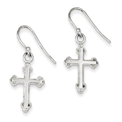 Sterling Silver Dangling Cross Frenchwire Earrings - Measures 1/2 Inch x 1 Inch - JewelryWeb