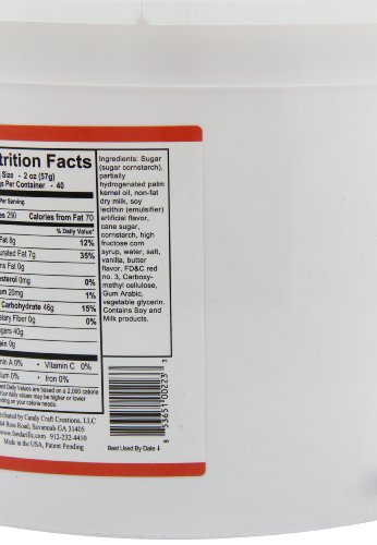 First orginial Buttercream Flavor; No Trans Fats; Glutten Free; Fruit flavors are a good source of vitiam C; 1 year shelf life p-nut and tree nut free; contains milk product