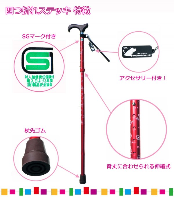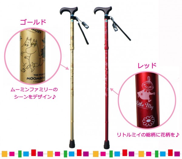 | ムーミンキャラクターをデザインした4つ折り伸縮式のステッキ! |
