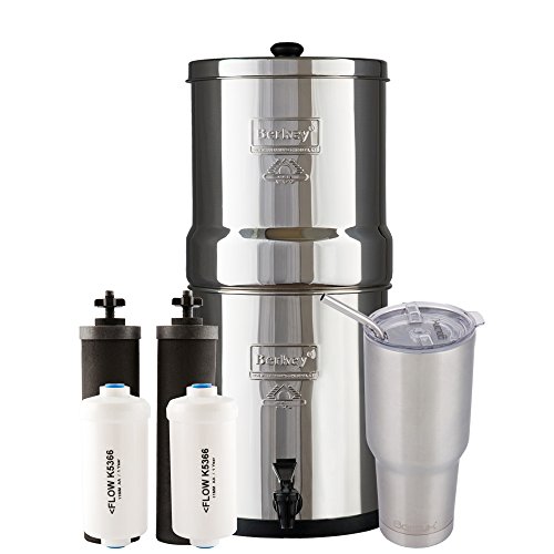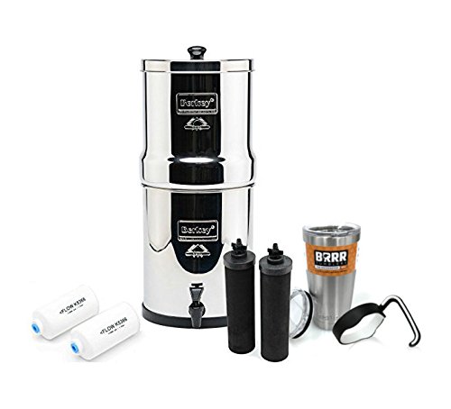 INCLUDES: 20oz BRRR Tumbler, Big Berkey stainless steel housing (Upper, Lower & Lid), 2 Black Berkey Filters, 2 Fluoride Elements, 2 Hole Plugs, 1 knob, 1 easy flow spigot, and 1 set of easy to follow assembly instructions. When drinking water that's been filtered using a Berkey purifier, you can rest assured that your water is clean and safe for consumption. In fact, Black Berkey purifier elements are far more powerful compared to competitors' water filters. When tested Berkey water filter elements removed 100% of pathogens, allowing them to be classified as purifiers rather than simply filters. The included two (white) Berkey fluoride filters attach to the bottom of the Berkey Purifiers and hang in the lower chamber. Berkey fluoride filters reduce the amount of fluoride in your water UP TO 95%. Each Fluoride filter has a lifespan of 1,000 gallons and each purifier can filter up to 3,000 gallons. The Big Berkey is constructed from High Grade 304 Stainless Steel, and can accommodate up to four Berkey Purification elements and four Fluoride filters, however only two of each are included with this package.Feature
