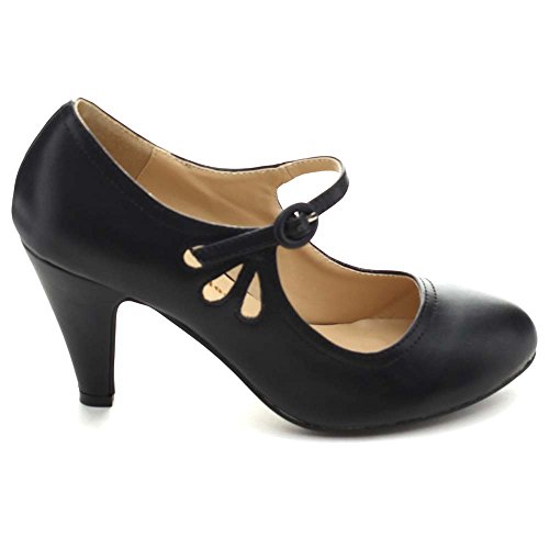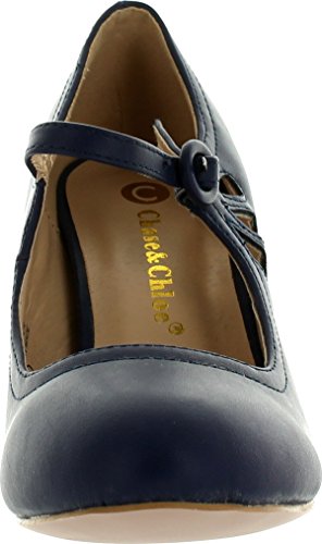 -. Title : Chase & Chloe Kimmy-21 Women's Round Toe Pierced Mid Heel Mary Jane Style Dress Pumps