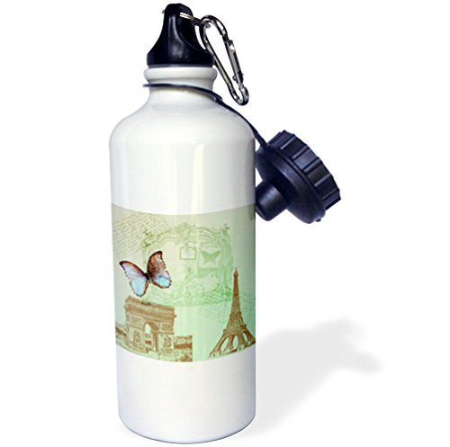 3dRose wb_79195_1 Vintage Paris Butterfly-Eiffel Tower Sports Water Bottle, 21 oz, White