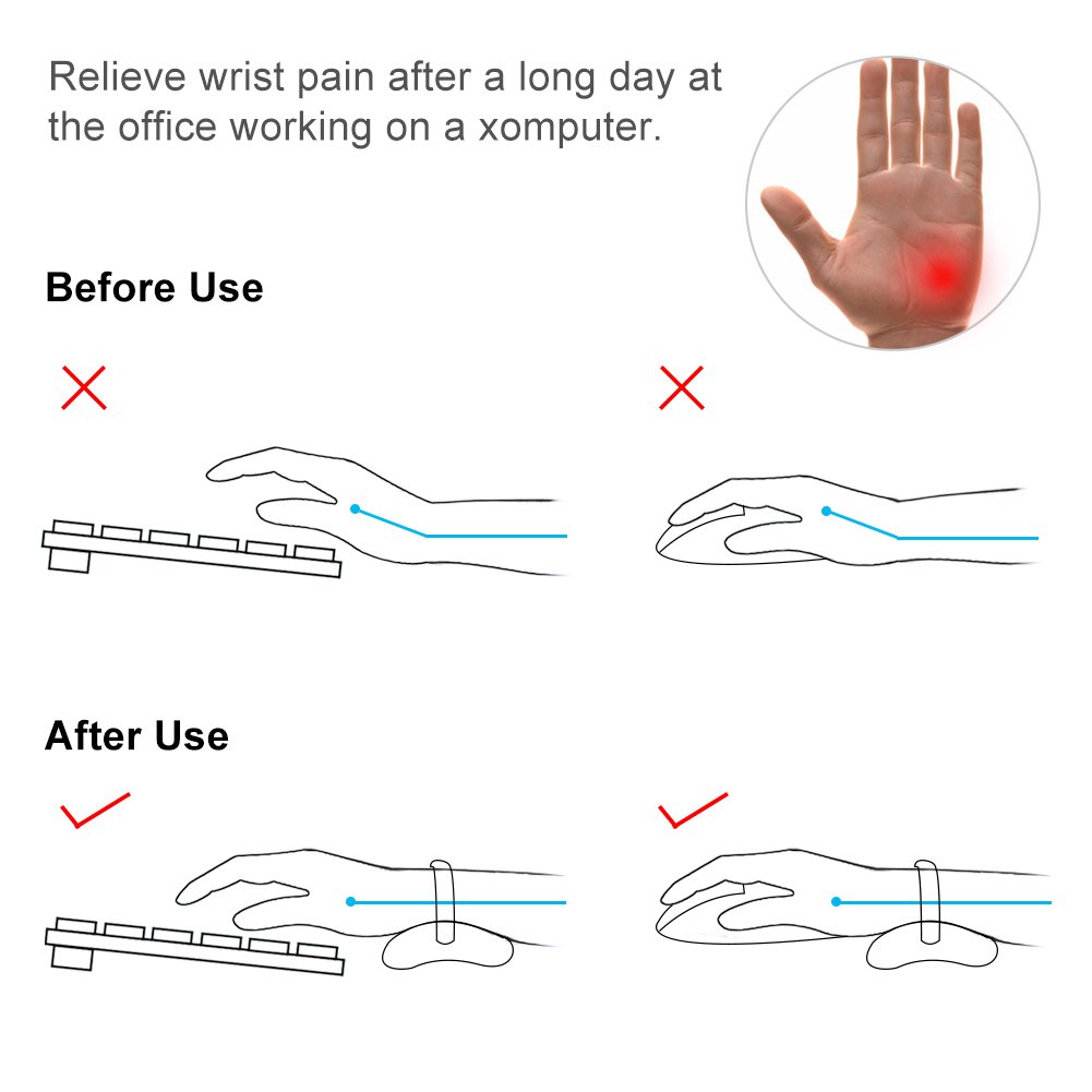 Wrapping around the wrist during mouse operation and typing disperses the weight, greatly reducing fatigue of arms and shoulders.