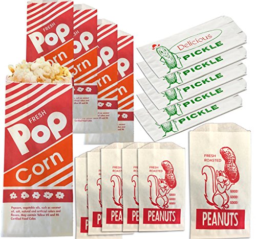Popcorn & Peanuts & Pickles Printed Wrap Bag with Squirrel 25 Bag Set Red White Stripe Classic Party Snack Favor Fun Sized Pack