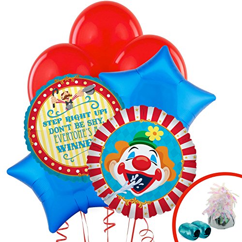 -. Feature : Includes (2) carnival foil balloons, (2) star foil balloons, (6) latex balloons, (2) rolls of curling ribbon, and (1) balloon weight. / Add matching tableware, favors, accessories, or a party kit bundle to complete your circus-themed birthday party.