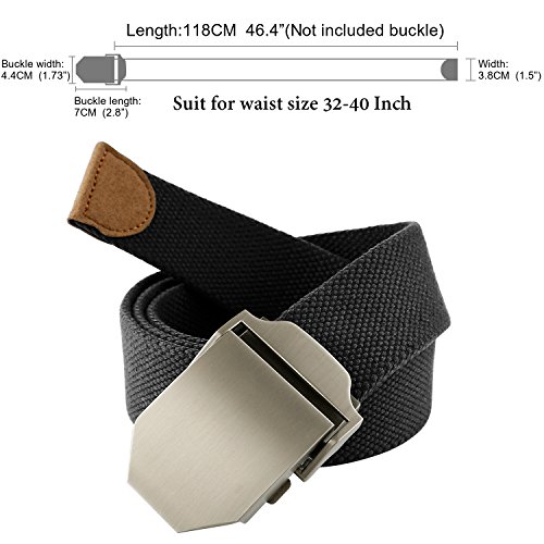 Suit for waist size 32-40 Inch.The total length not included buckle is 118cm(46.4 Inch), strap width is 3.8 cm(1.5 Inch). Buckle length: 7 cm(2.8 Inch), Buckle Width:4.4cm(1.73 Inch). One size suits trouser, jeans, pants and shorts of any size