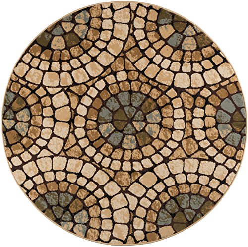 Multicolored 5 ft. 3 in. Round Transitional Area Rug