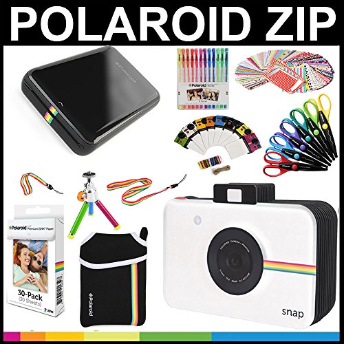 Polaroid ZIP Mobile Printer Gift Bundle + ZINK Paper (30 Sheets) + Snap Themed Scrapbook + Pouch + 6 Edged Scissors + 100 Sticker Border Frames + Color Gel Pens + Hanging Frames + Accessories