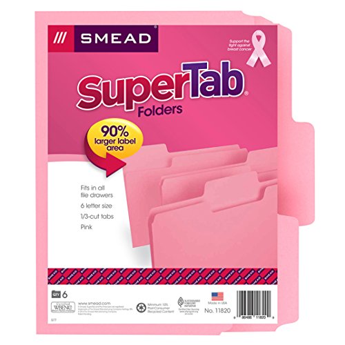 -. Title : Smead SuperTab® File Folder, Oversized 1/3-Cut Tab, Letter Size, Pink, 6 Per Pack (11820)