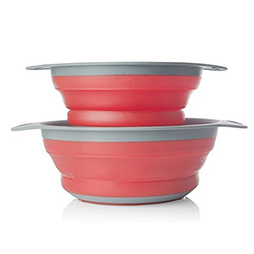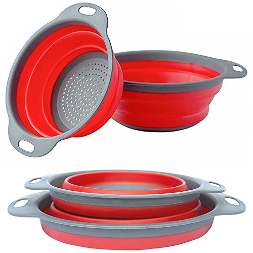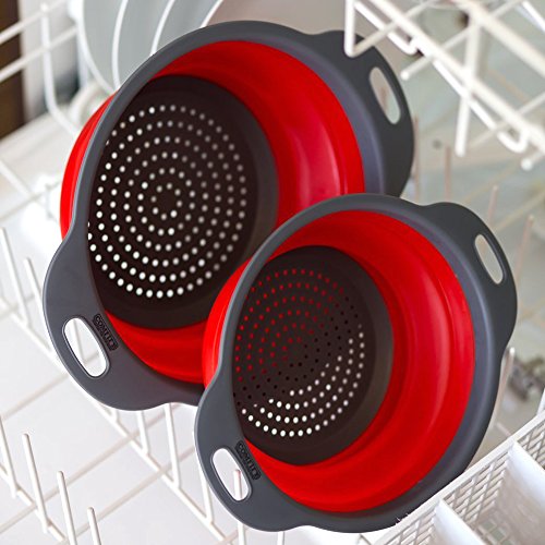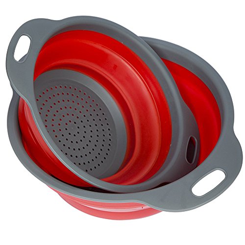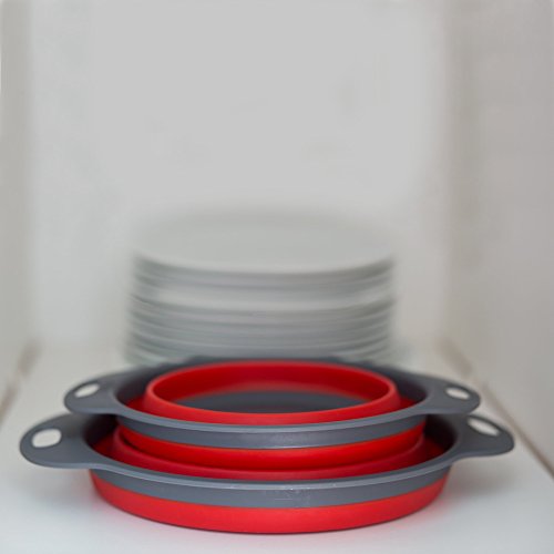 Cook@Home Collapsible Colanders (Strainers) Set of 2 - Includes 2 Folding Strainers Sizes 8-inch and 9.5-inch, (Red and Grey)