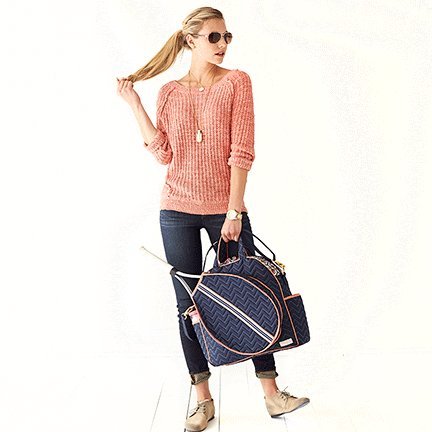 Studio : cinda b. Publisher : cinda b. Binding : Misc. Product Description You've met your match! Haul and store all of your tennis gear in style, on and off the court, with this roomy tote. The front racquet pocket holds up to 2 standard-sized racquets. Two side pockets keep water and tennis balls close at hand, while its spacious interior has plenty of room for a change of clothes, shoes, and other accessories! 0