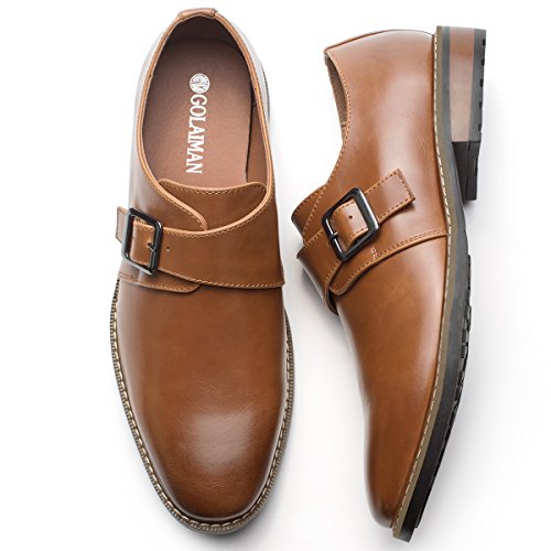 Product Description Product Features: -Style: monk strap slip on loafer dress oxford -Occasion: formal casual -Breathable leather: Featuring premium leather upper, smooth and comfort; Match with breathable cushioned leather insole and soft leather lining to keep your feet dry and odor free through the day.? -Lightweight outsole: Equipped with a shock-absorption synthetic outsole, non-skid and providing lasting durability. -Fashion elements: Single monk strap buckle and classic plain toe design for added style. Notes: -Please measure your foot length and choose the correct size according to the size chart. -The actual color of the shoes maybe different from the picture shown due to the different screen of display or reflecting light when shooting. - Package includes: 1 * Item and 1 * Paper Box
