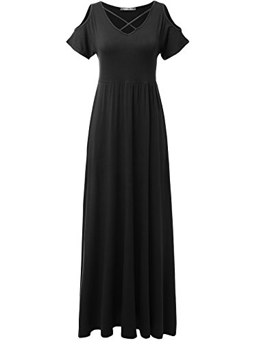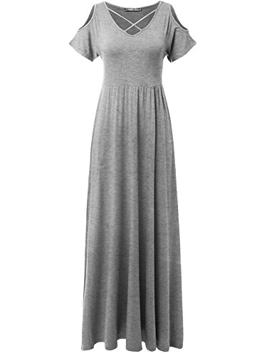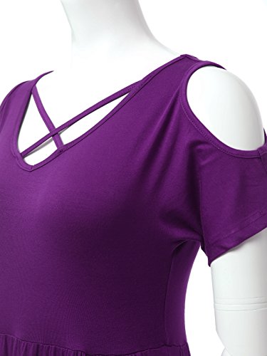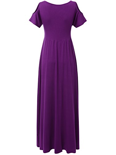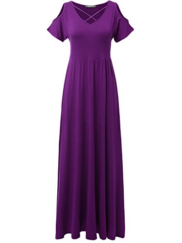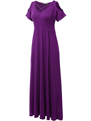 JayJay Women Caged Neck Off Shoulder Boho Pocket Long Dress,PURPLE,M