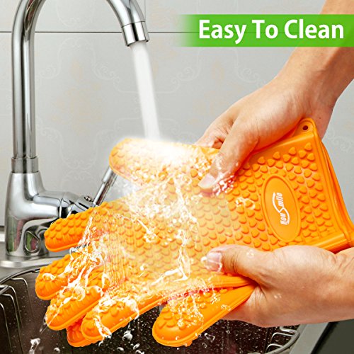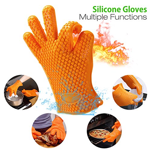 【SILICONE GLOVES】Heat resistant temperature 500F, anti-slip design, perfect flexibility, no taste, easy to clean.