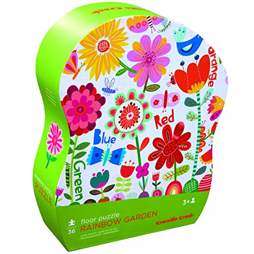 -. Binding : Toy -. Brand : Crocodile Creek -. EAN : 0732396407544 -. Feature : Finished puzzle size is 27" long x 20" high / 36 thick puzzles pieces that fit together well for kids ages 3 and up / Encourages hand-eye coordination, fine motor skills and problem solving / Puzzle pieces are made of strong, high-quality blue board that will not tear or break. Printed with soy-based inks / Beautifully illustrated artwork on both puzzle and shaped storage box -. Genre : Educational -. IsAdultProduct : 0 -. Label : Crocodile Creek -. Manufacturer : Crocodile Creek -. Model : 4075-4 -. MPN : 4075-4 -. PackageQuantity : 1 -. PartNumber : 4075-4 -. ProductGroup : Toy -. ProductTypeName : TOYS_AND_GAMES -. Publisher : Crocodile Creek -. Studio : Crocodile Creek -. Title : Crocodile Creek Rainbow Garden Jigsaw Floor Puzzle (36 Piece) -. UPC : 732396407544 -. Warranty : No Warranty