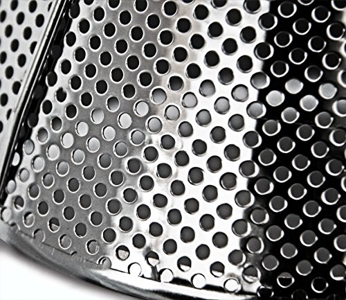 USES - Perforations (not mesh) allow liquid to pass through while retaining pulp, seeds, stems and skins. Also perfect to create smooth, silky soups and stock.