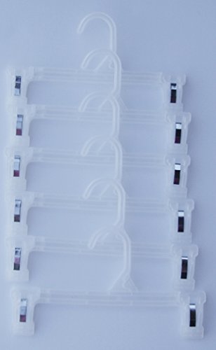 -. Feature : Pack of 6 clear skirt/pants hangers / Each hanger measures 10" across / Good for travel / Helps with storage & organization