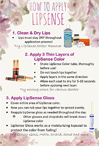 LipSense is the premier product of SeneGence and is unlike any conventional lipstick, stain or color. As the original long-lasting lip color, it is waterproof, does not kiss-off, smear-off, rub-off or budge-off! Create your own color palette by combining shades. Your customized look will last even longer and your lips will stay moist and plump with LipSense Moisturizing Gloss. LipSense comes in a wide variety of shades and textures; luscious mattes, seductive sheers, inspiring sparkles, and playful frosts. LipSense lip colors are perfect to mix and match; LipSense is versatile and can be used to create a number of effects. LipSense is initially sold as a set, which includes LipSense liquid lip color, a moisturizing Gloss, and an Ooops! Remover . Users must have a remover in the event they need to remove the product.Feature