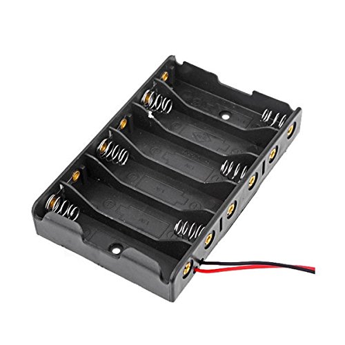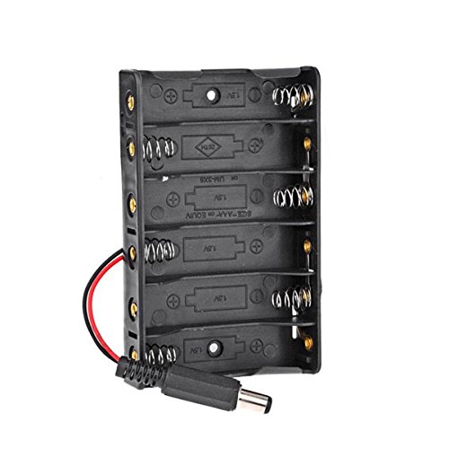 Description: This is 6 x AA battery case storage holder with DC2.1 power jack for Arduino Holds 6 x AA batteries (not included) which can make 7.2 V rechargeable battery pack from NiMH / NiCd cells or 9V battery pack from alkaline cells Power supply for monolithic system, Arduino system, 2WD mobile robot etc With DC05 power supply plug Cable Length: 12cm Specifications: Voltage: 9V Material: Plastic Power: 6 x 1.5V AA batteries Color: Black Net weight: 25g Package included: 1 X Battery case with DC2.1 power jack