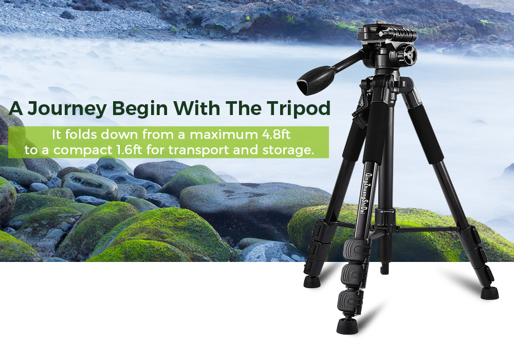 Taking steady videos and stills with this tripod. The quick-release feature is convenient to hand-held shooting instantly, which has a bubble level for stability and a three-way pan head for easy camera movement. It folds down from a maximum 4.8ft to a compact 1.6ft for transport and storage.
