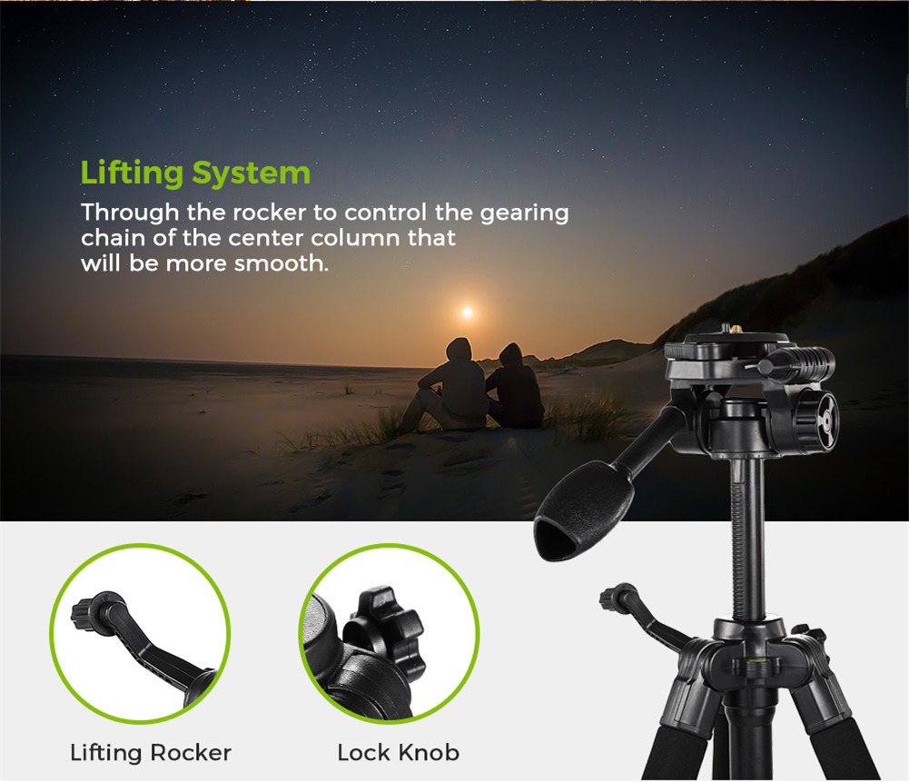 用这个三脚架拍摄稳定的视频和剧照。快速释放功能,方便手持拍摄瞬间,具有稳定的气泡水平和三向平移头便于相机移动。它从最大4.8英尺折叠到紧凑的1.6英尺运输和存储。