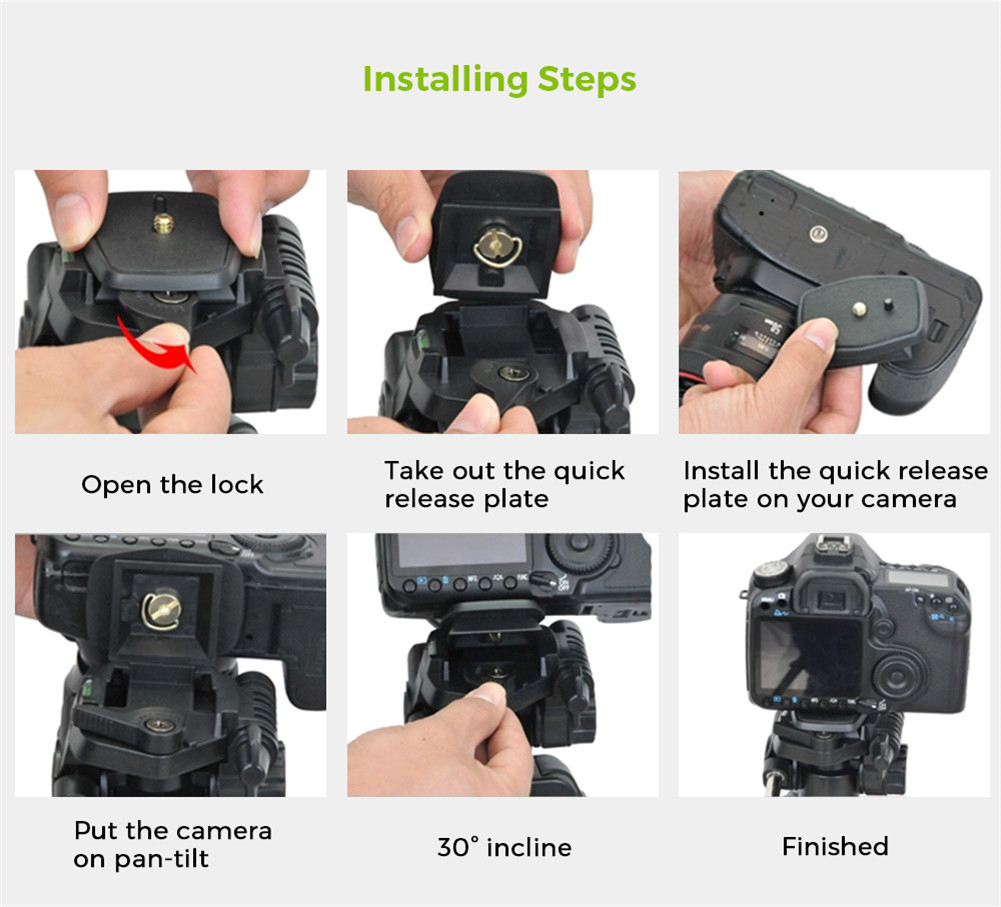 - 1/4 screw, quick-release plate helps to install cameras quickly.