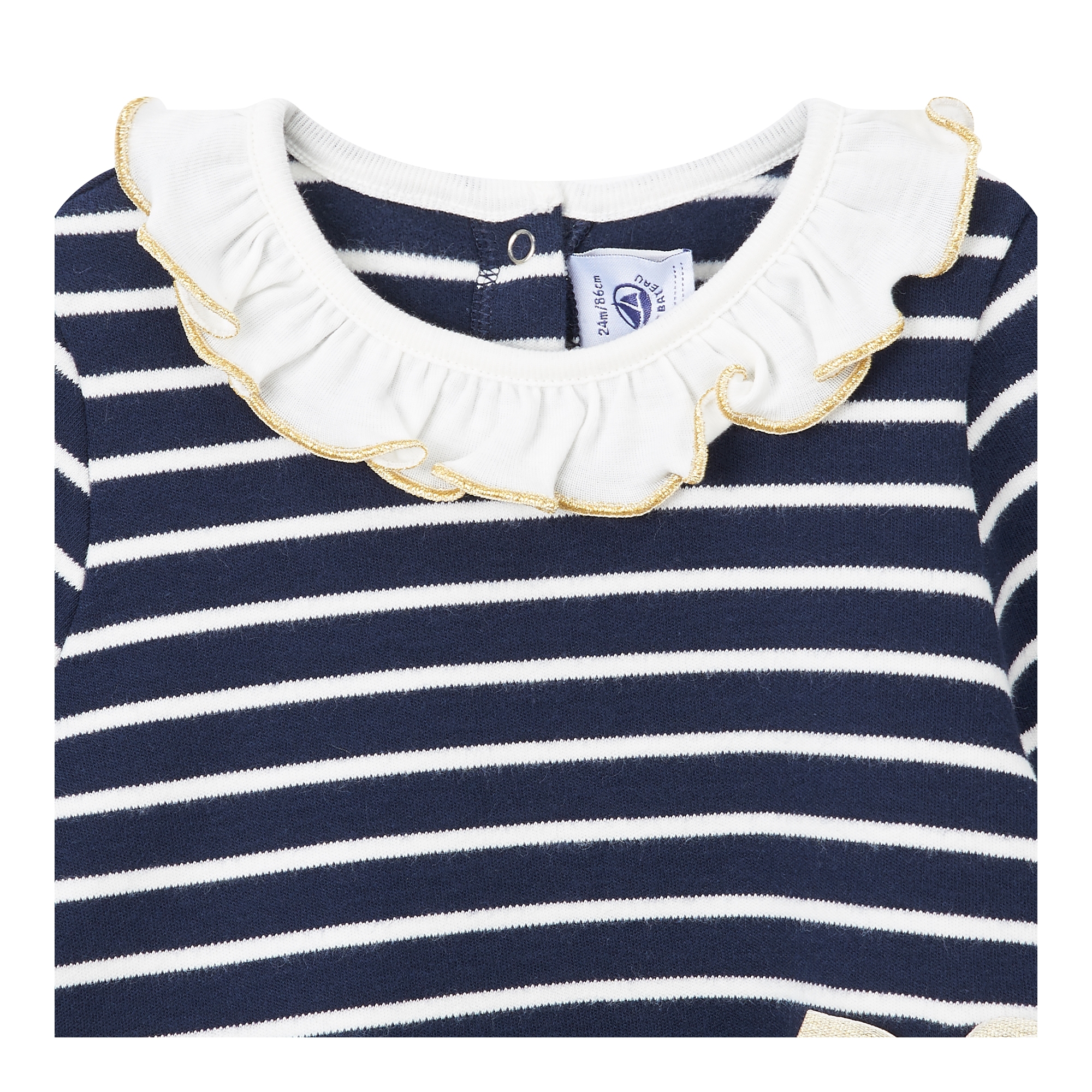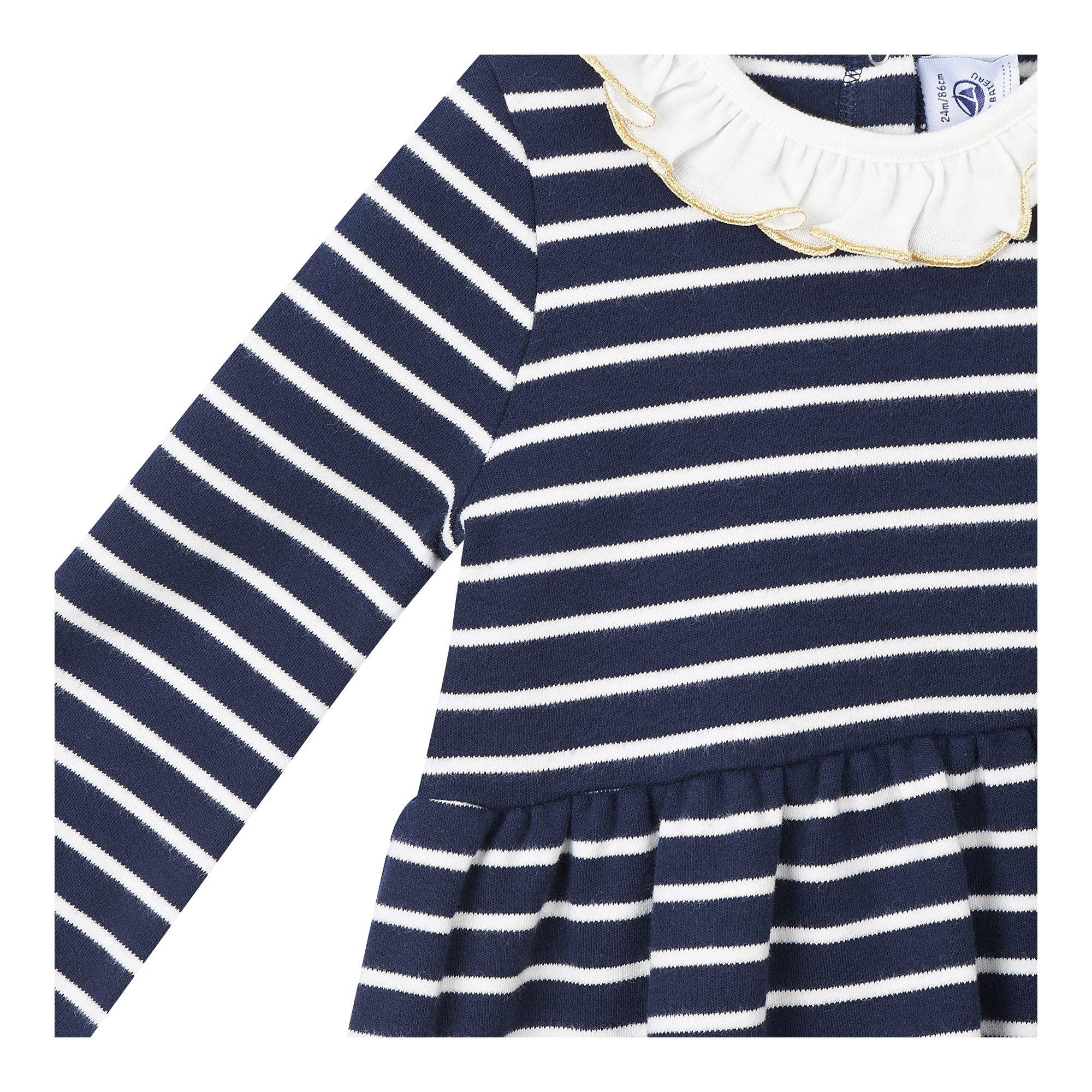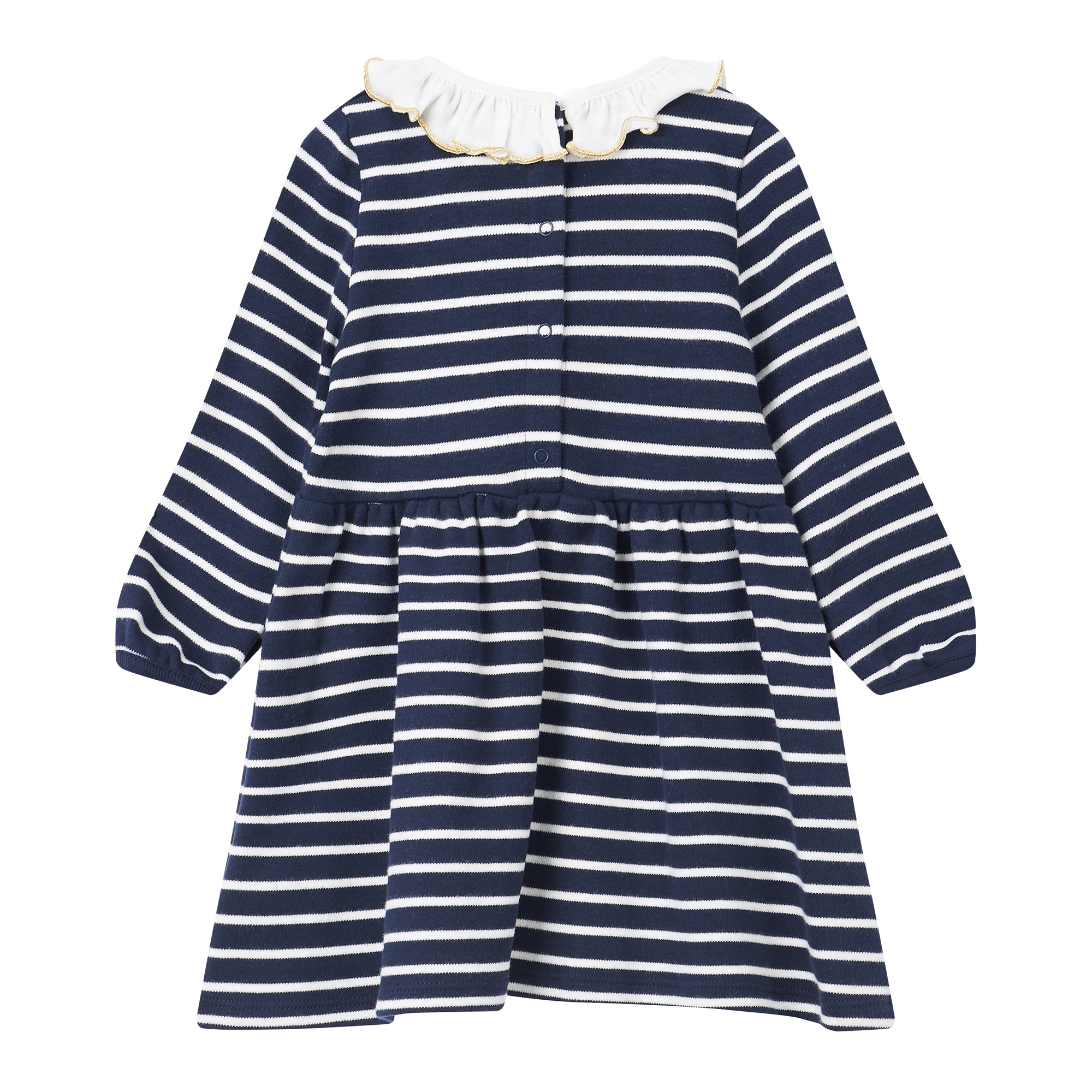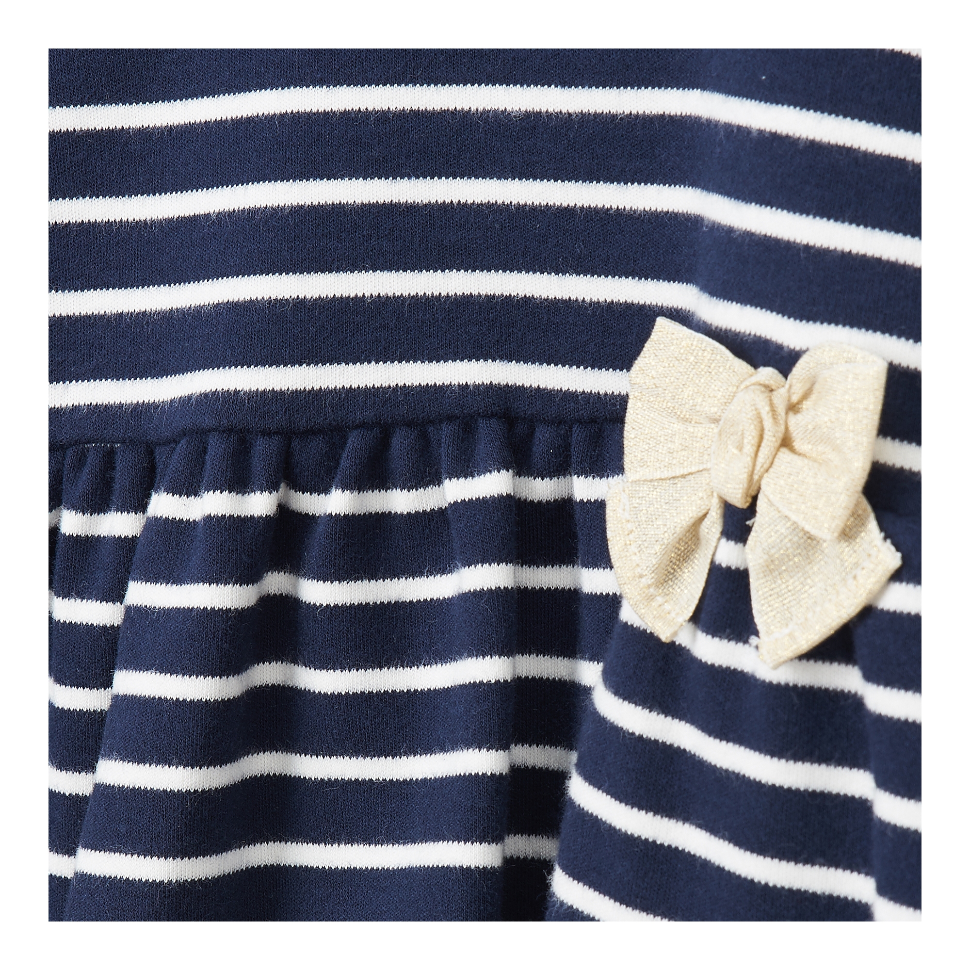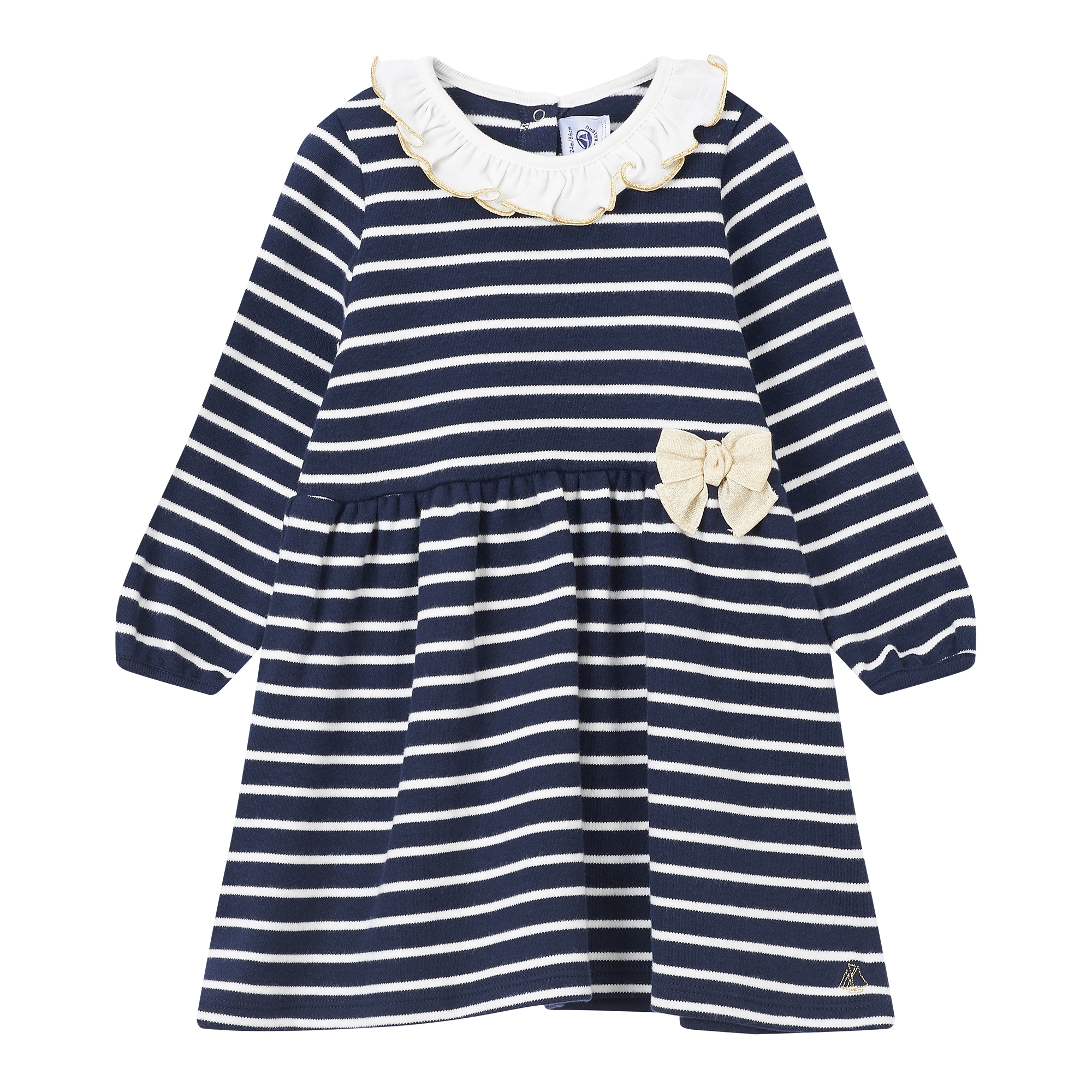 컬렉션 : 2018 Fall/Winter 디자인 포인트 : - 골드 톤의 보우 장식 디테일이 돋보이는 페미닌한 무드의 원피스- 넥라인 프릴 카라 디테일로 포인트를 더한 디자인- 스트라이프 패턴이 캐주얼한 느낌을 주는 아이템 스타일링 추천 : 단독으로 다양한 액세서리와 귀여운 페미닌룩을 연출 할 수 있음