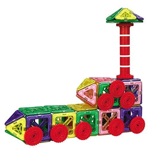 Intelligent Magnetic Construction Set For Brain Development MAG-GENIUS are easy to use and never frustrating. The patented intelligently designed MAG-GENIUS magnets are housed in colorful, high quality ABS plastic. They always attract and never repel, so the moment any two pieces touch they connect. High quality magnets that instantly connect are sure to spark curiosity and play time is creative, stimulating, and constructive. Building with MAG-GENIUS engages mathematical and scientific thought, deductive reasoning, and requires use of spatial awareness. Manipulating the powerful, colorful MAG-GENIUS magnets IS educational, but despite being an educational experience, play is magical and FUN! Ready To Build : 64 Shapes Sparking Imagination and Creativity More Shapes, More Models, More Variety, and Definitely More Fun! The 62 piece set is perfect for everyone. A great choice if you're looking for a bigger challenge, and a novice builder will quickly and easily learn to manipulate the simple touch/connect magnets and start building like a pro. With so many colorful pieces you can "Build the ball", build a house, build a building, make a simple cube, a simple pyramid, a cute and colorful snail and our favorite the turtle! This is the basic set and MORE. The 64 Piece set 2x more pieces than the classic set, PLUS we've added an exciting new shape; the Pentagon! The Pentagon will take your building designs to the next level. Your only limit is your imagination. More pieces means More possibilities More pieces and more possibilities. 64 muli-colored high power magnets to enhance your designs and upgrade your building capabilities. 64 building pieces means enough to share, because building with friends is even more FUN! 64 pieces lets you split up in teams and see who can build the fastest, the tallest, or the wackiest design. Great for those looking to take the next step in creativity. 64 multi-colored, high quality, ABS plastic magnets conform to CE, ASTM, and EN71Feature