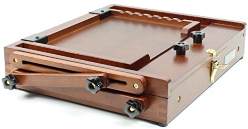 The pochade boxes are built with strong finger joint construction using, poplar, maple, and Baltic birch components. A beautiful cherry stain and lacquer finish transform these painting tools into pieces you will treasure.