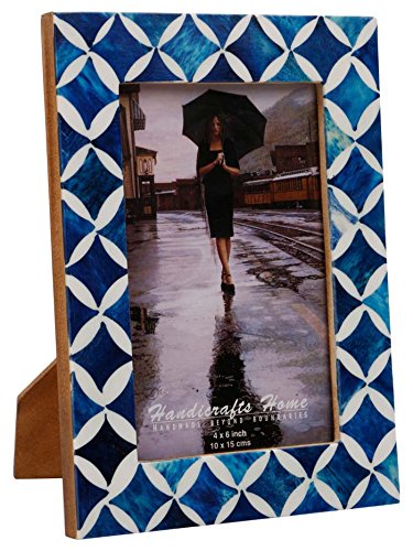 -. Feature : Handmade Indigo Photo Frames Made by Buffalo Bone and Resin Available in 5 Styles Modern Naturals Designer Photo Frames / 1'' Border Quatrefoil Inspired High Profile Arts Wooden Bone Home Decor Accessories / These are Table Table Picture Frames Only. Suitable for Landscape and Portrait Display / Each and Every Picture Frame is unique with Bone Colour, Please note* your item may arrive a little different in colour as shown in the image. / The backside of each frame made by pine wood and supported by metallic clips and corners.