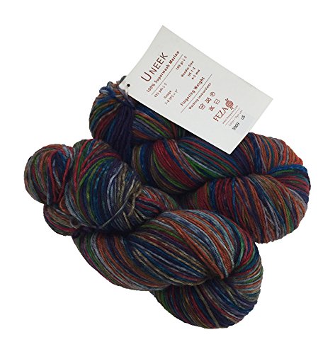 Feza Yarns Uneek Sock Yarn, 100% Superwash Merino Wool, Fingering Weight, Woodstock Multi, 435 YDS. each skein, 2 Skeins (Color 3009)