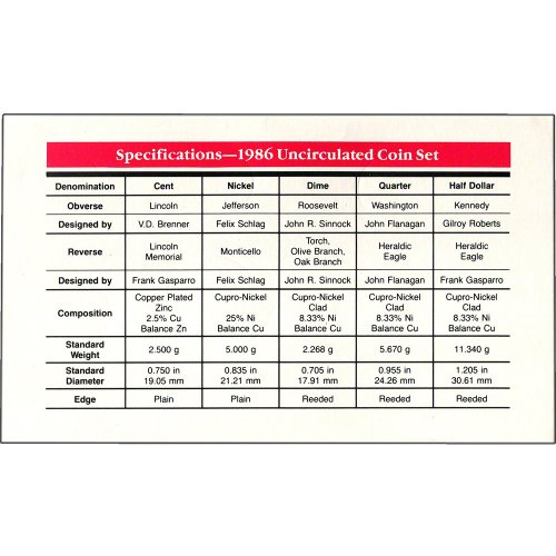 1986 US Mint Uncirculated Coin Set OGP
