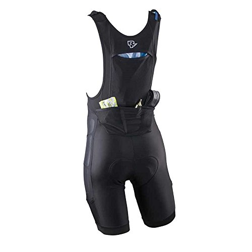 Studio : RaceFace Publisher : RaceFace Binding : Misc. Product Description More riders are using smaller hydration packs, but they still want the convenience of carrying items in a secure, balanced location. That's why Race Face developed the Stash Bib Shorts. Designed with a polyester/spandex main body to keep you cool and dry, these bib shorts feature a hydration pocket for a 50oz reservoir and the STASH back pocket system to accommodate extra gear, like tools, spare tube, pump, nutrition, and more. Integrated channel over the shoulder helps secure the reservoir tube for easy access. Butterfly mesh liner, welded mesh side panels and nylon mesh bib upper increase moisture control and ventilation. Italian-made TMF chamois gives all-day comfort and has an antibacterial top sheet for odor-free protection. Fuel storage pockets at thighs offer easy access to gel packs while riding. You'll never need to wear a traditional pocketed XC jersey again. Polyester/spandex fabric is moisture-wicking and quick-drying Butterfly mesh liner with nylon mesh bib upper for breathability Welded mesh panels along outer legs for strategic venting Flatlock stitching throughout eliminates chafing STASH back pocket system -- 3 open pockets Hydration pocket fits a 1.5L (50oz) reservoir Channel feeds hydration hose over shoulder and secures with loops Left and right thigh pockets for easy access to fuel Italian-made TMF chamois with antibacterial technology for comfort Silicone leg grippers stay in position Reservoir not included 0