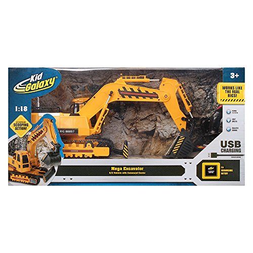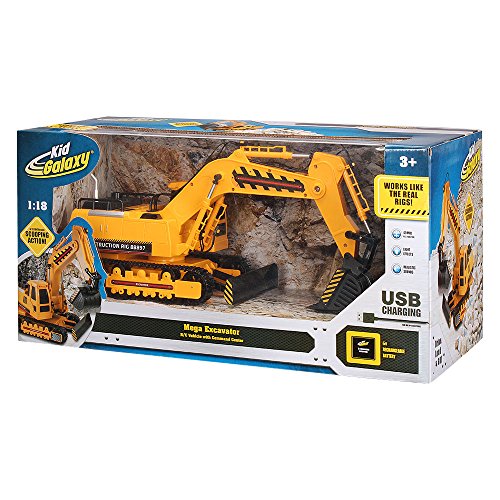 KID GALAXY MEGA CONSTRUCTION REMOTE CONTROL EXCAVATOR & BULLDOZER. 10 FUNCTION RC TOY TRACTOR, 49 MHZ