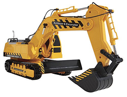 Bulldoze toys, sand or loose dirt into a pile with this remote control excavator. Then scoop with motorized excavator bucket