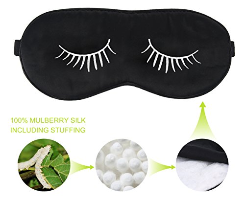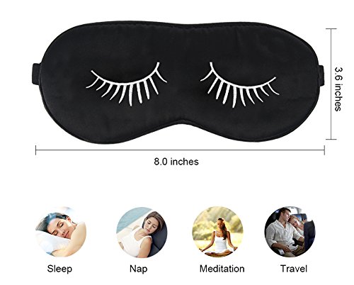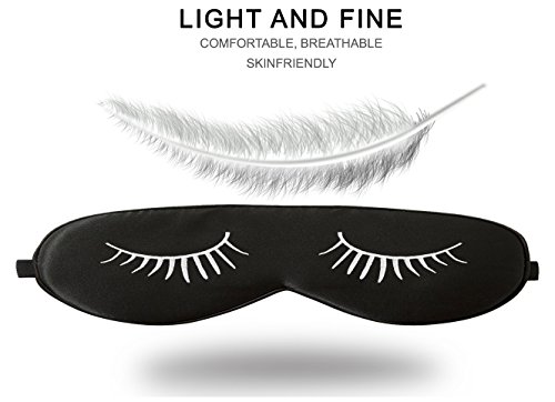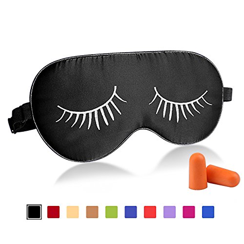 Fitglam Natural Silk Sleep Mask with Eyelashes Patterns & Free Ear Plugs, Best Sleeping Eye Cover for Travel, Nap, Meditation, Blindfold with Adjustable...