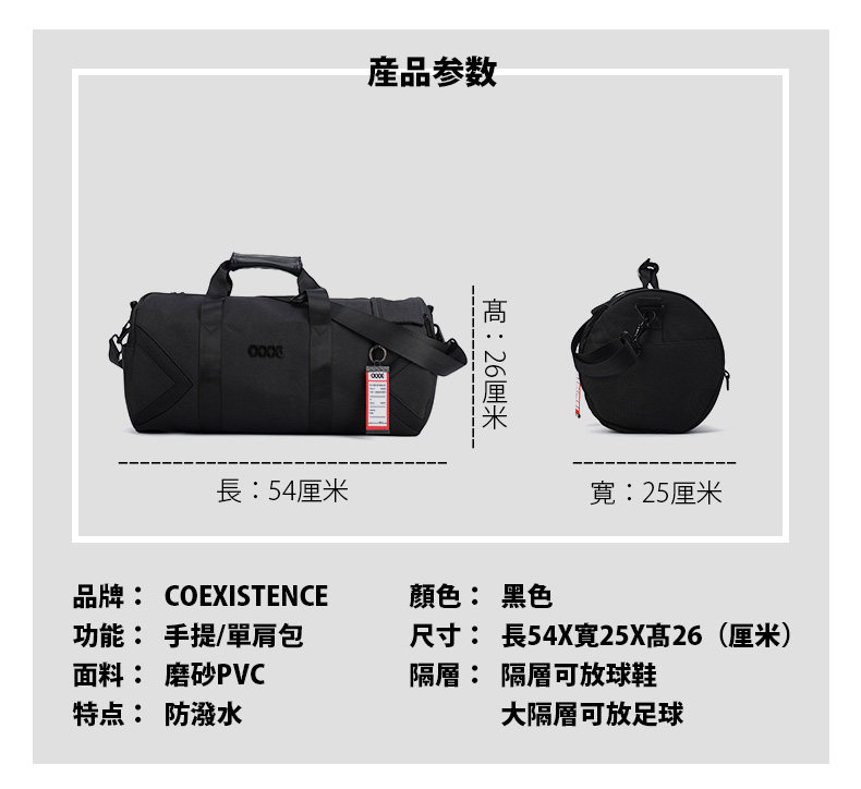 男士潮牌大容量防水手提运动健身包32009