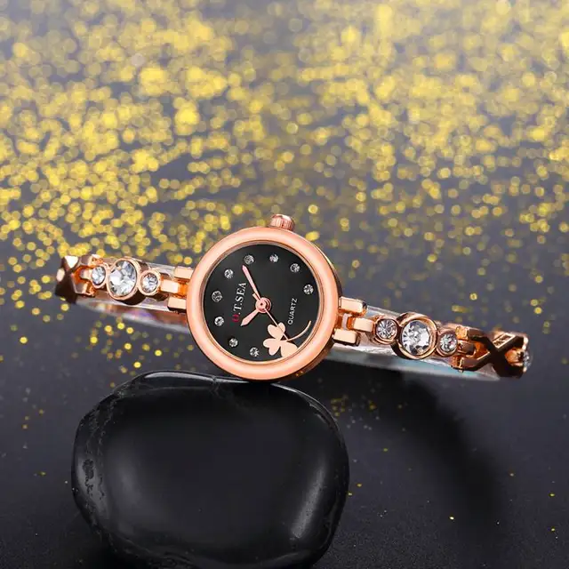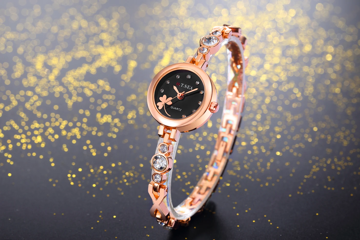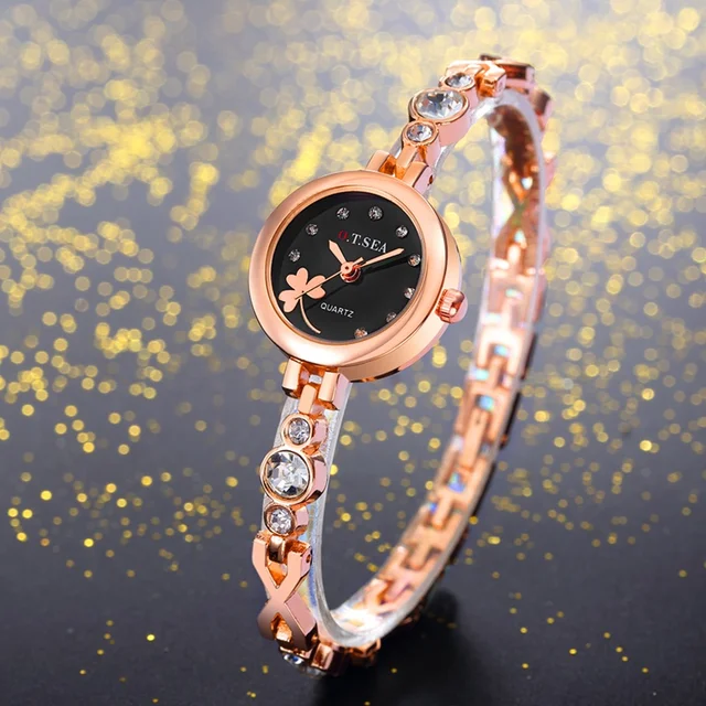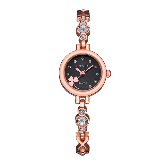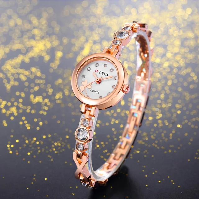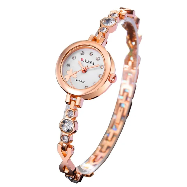 | [해외] 2017 O. T. 바다 클로버 여성 팔찌 시계 로즈 골드 여성 라인 스톤 드레스 석영 손목 시계 Relogio Feminino 달콤한 시간 |