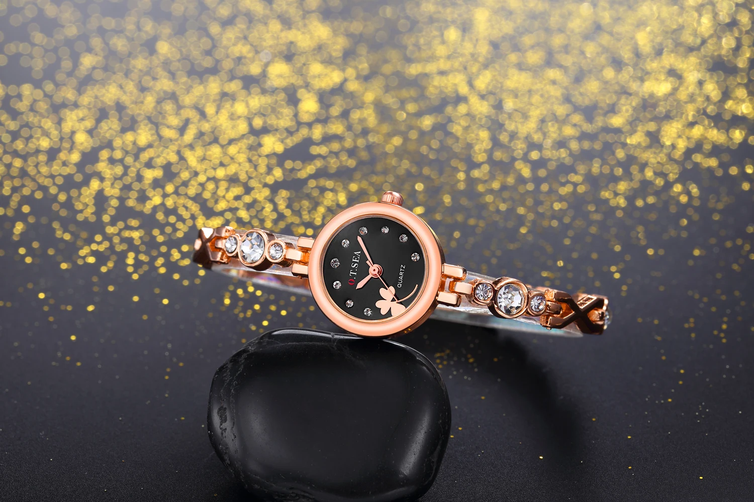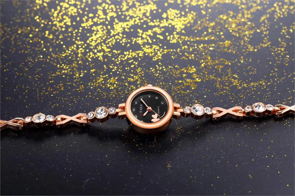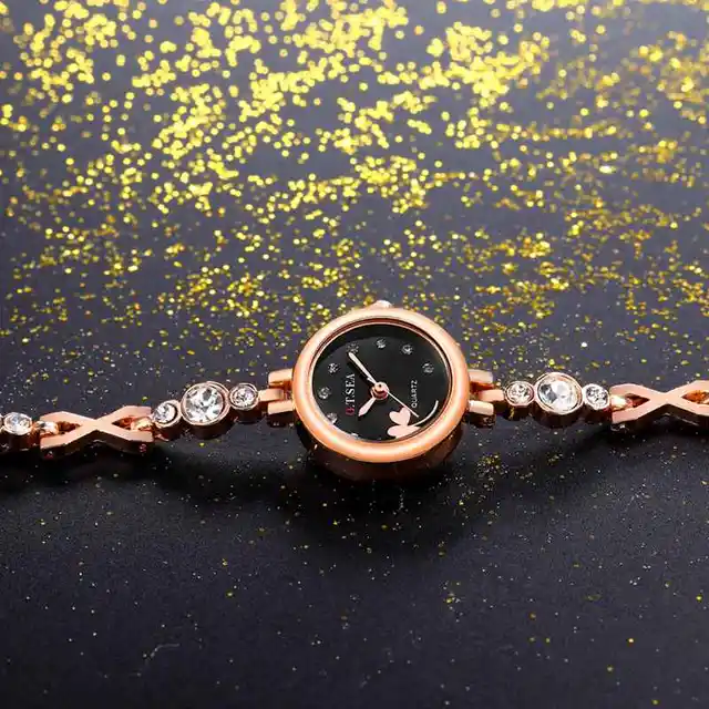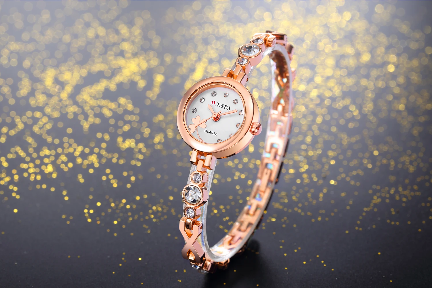 | [해외] 2017 O. T. 바다 클로버 여성 팔찌 시계 로즈 골드 여성 라인 스톤 드레스 석영 손목 시계 Relogio Feminino 달콤한 시간 |