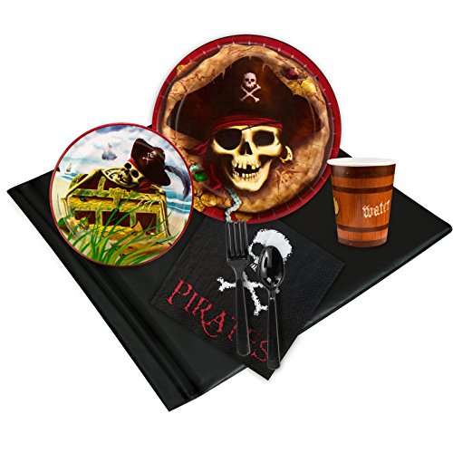 -. Feature : Pirates 24 Guest Party Pack includes 24 dinner plates, dessert plates, cups, forks, spoons, 40 lunch napkins, 2 solid table clothes. / Add additional party tableware, decorations, favors, games, and activities to complete your celebration and entertain your guests. / Great for childrens birthday parties, kids school parties, a pizza party, or a theme party. / Perfect for fans of Pirates of the Caribbean, swashbucklers, and sailors.