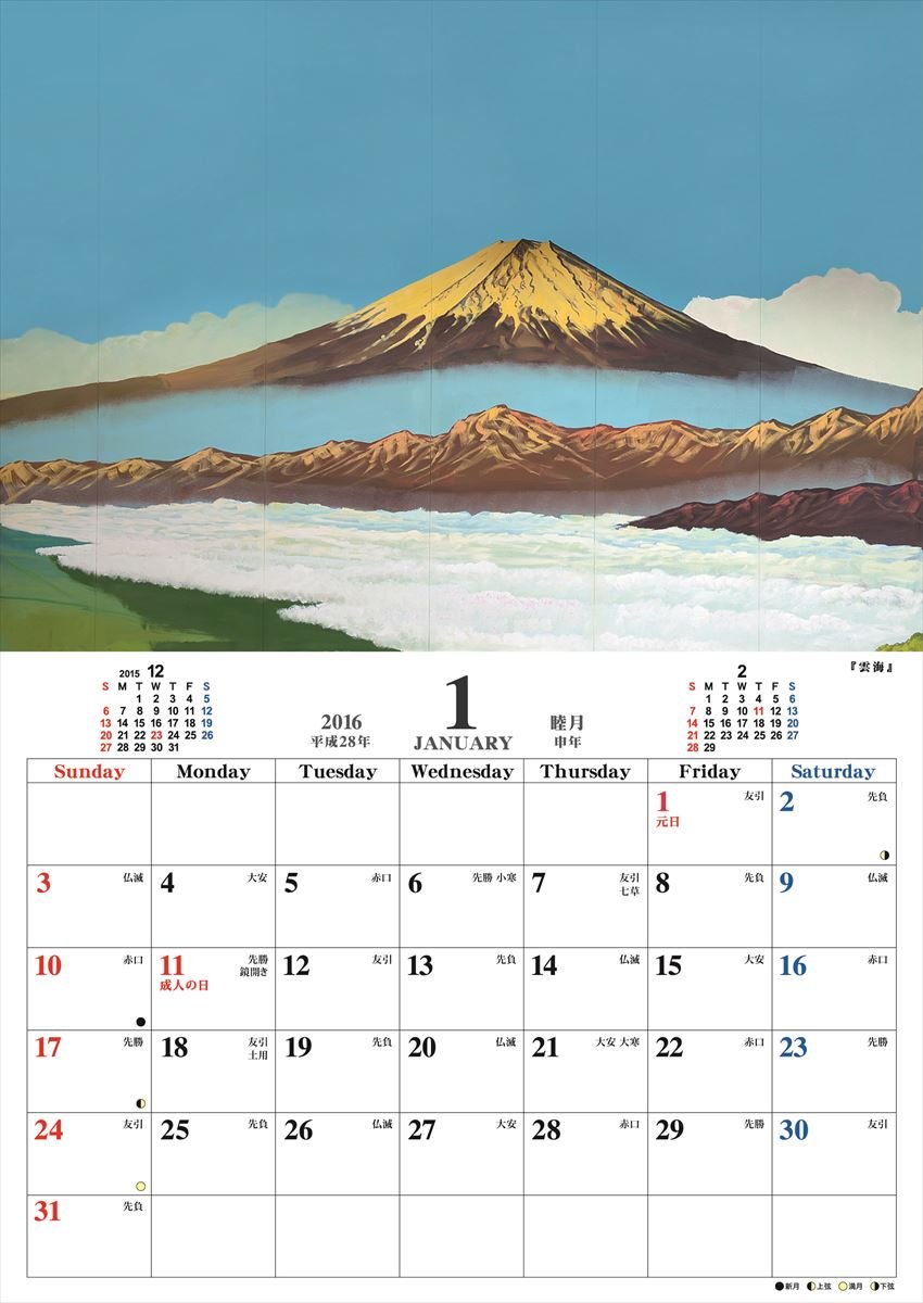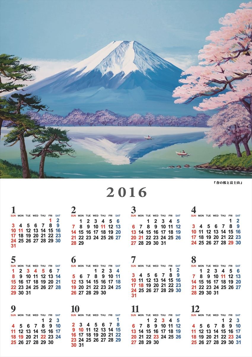 Bathhouse picture of Mount Fuji 2016 Calendar wall hanging