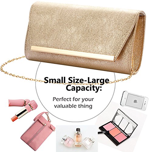 Product Description Product describtion: Do you need a new,elegant and modern evening bag? Are you looking for a special gift for your girlfriend-lover or yourself? If that's the case you should continue reading! Features : Type : Evening bags Weight :1.1 pounds Size : 9"(L)x 4.95(H)" x 2.5 "(W)inches Closure type : center folding frame with designer closure Fit enough : iPhone 7S,7Plus/small wallet/makeups/mirror/cash/credit card/car keys/lipstick/ Carry option :With an optional long shoulder O-shaped chain provides different looks as a handheld clutch,a shoulder bag or a crossbody bag (O-shaped chain wouldn't caught or pulled hair or dress) Occasions :Best gifts for your girlfriend,lover and friends,Fit for all style of clothes,Perfect for wedding/prom/ party/black tie/show/cocktail/night out Service guarantee Accept returns or exchanges if you're not satisfied with it for any reasons or have any problem with our evening bag Please don't hesitate to contact us and let us know the problem.We promise that we can give you a good solution within 24 hours .