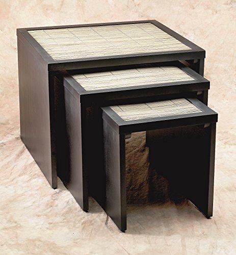 -. Feature : Set of 3 rubber wood nesting tables with flat bamboo trim