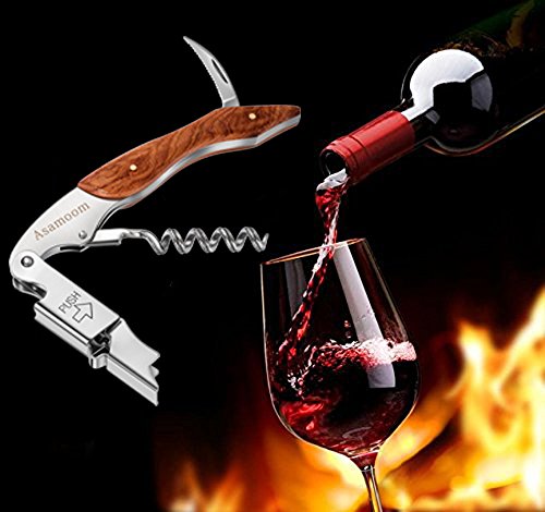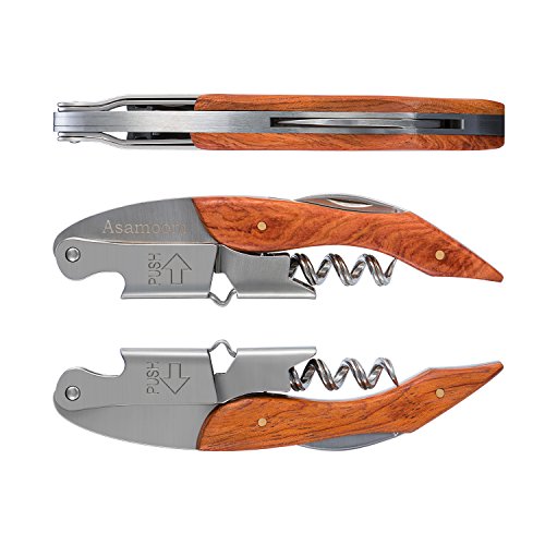 ASAMOOM 소멀리에 나이프와인 오프너전용 수납 케이스 첨부 와 스테인레스제 코르크 빼기 2단계식디자인목제 그립 다기능 나이프 코르크 추진기(screw) 트위스터 콜렉터