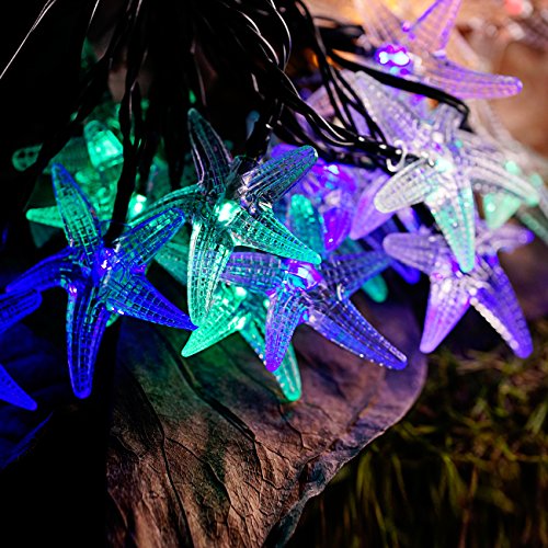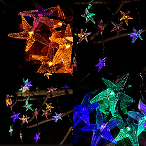 LED Solar Starfish String Light Fairy Lights, 23Ft/7M 30LEDs Multi Color Starfish Shaped Waterproof Outdoor String Lights for Christmas, Garden, Lawn, Yard, Fence