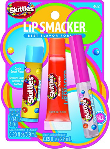 ReleaseDate : 2015-05-27 Studio : Markwins Beauty Products Publisher : Markwins Beauty Products Binding : Health and Beauty Product Description Skittles Flavor Collection. Enjoy your favorite Skittles candy flavors in three delicious glosses. Skittles Banana Berry Lip Smacker, Skittles Mango Tangelo Squeezy Lip Smacker, Skittles Strawberry Star fruit Liquid Lip Smacker. 0