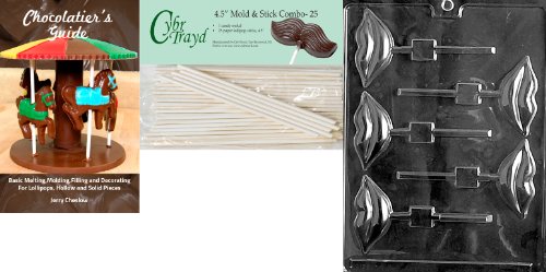 Cybrtrayd 'Lips Lolly' Valentine Chocolate Candy Mold with 25 4.5-Inch Lollipop Sticks and Chocolatier's Guide