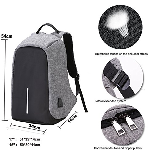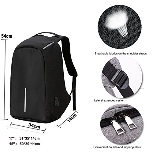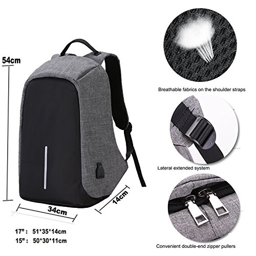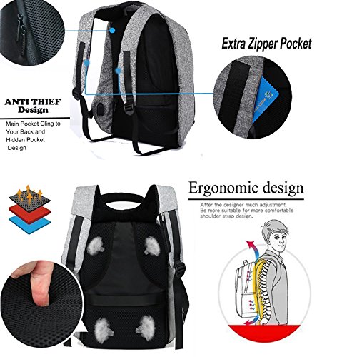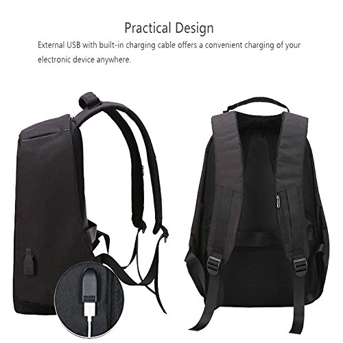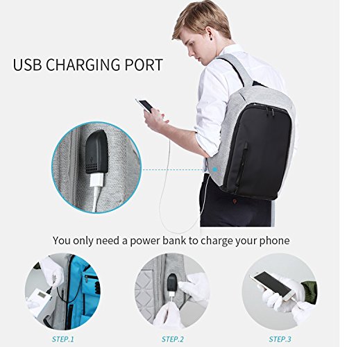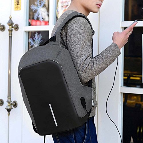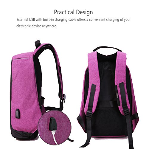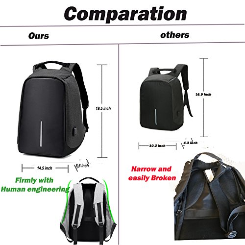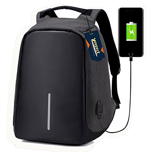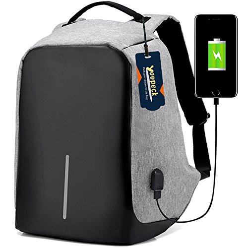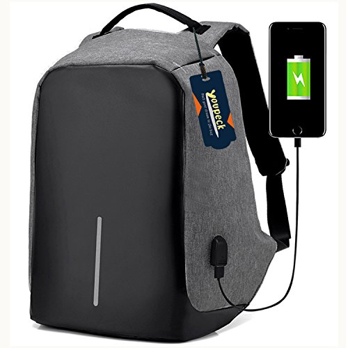Studio : Youpeck Publisher : Youpeck Binding : Personal Computers Product Description Beautiful bag convenient to men or women use at any occasion, This backpack is very ergonomic and it balances weight.And don??t worry you were be stolen.And USB charging port at the right side of the lage volume capacile backpack. More than 10 compartments offer separated space for laptop,phone,book,camera,watch,pen,bottle,umbrella,cloth,card,shoes and more. The luggage strape on the back can attach you backpack to your suitcase,help you have a relax and comfortable experience.Good design woth own.Don't be hesitate and add into your card. Specifications 1.Material:Polyester 2.Dimensions: Exterior: 19.5in * 14in * 3.6in ( 49cm*38cm* 14.2cm), Laptop Compartments Layer Size: 15.5in*10.8in( 39*5cm*25.5cm) 3.Fits laptop size: 14 15 15.6 inch 4.Weight:765g Package Include 1X laptop backpack 1X Usb Cable Note Water repellent in 5-10 minutes, clean water in 5 minute will not left any mark , If you let water/ rain on it too long time, it will absorb into it. Do not use it in heavy rain Install Guide The backpack does NOT bring a charger itself. it brings a usb cable (female in the outside and male in the inside), so you can plug into a portable batery charger. Step1: Take off the main zipper, find a small zipper pocket on the right of the bag inside, and find the usb port out. Step2: Put your battery inside of the small pocket, connect your bettery and the backpack USB port. Step3: connect your phone with the backpack USB port for charging through your own phone usb cable. Warranty These Youpeck(TM) bags are covered by a 3-month limited warranty that guarantees ths products to be free of defects in material and workmanship for a period of 3-month from the date of purchase. If any question, please contact us, we will reply you within 24 hours.
