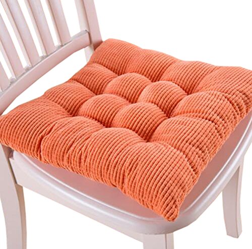 -. Feature : Material:Cotton. / Size:17 inch*17 inch*2.2 inch. / Comfortable breathable to improve blood flow. / soft and comfortable seating. / Attached ties keep chair cushion securely fastened to your furniture