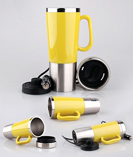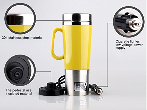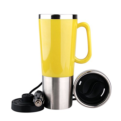 400ml Vacuum Insulated Stainless Steel Travel Mug Car Cup with charger car Boiling Mug Electric Kettle Boiling Vehicle Thermos with Cigarette Lighter DC12V Heating Cup (yellow)